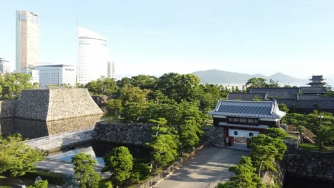 被譽為日本三大水城之一,這座濱海城池面朝瀨戶內海,護城河與海洋直接相連。可以搭乘木船進行「城舟體驗」,或體驗餵食護城河內的魚。園內還有優美的枯山水庭園,以及融合日式與西洋風格的迎賓館「披雲閣」,入場時還會贈送原創商品。