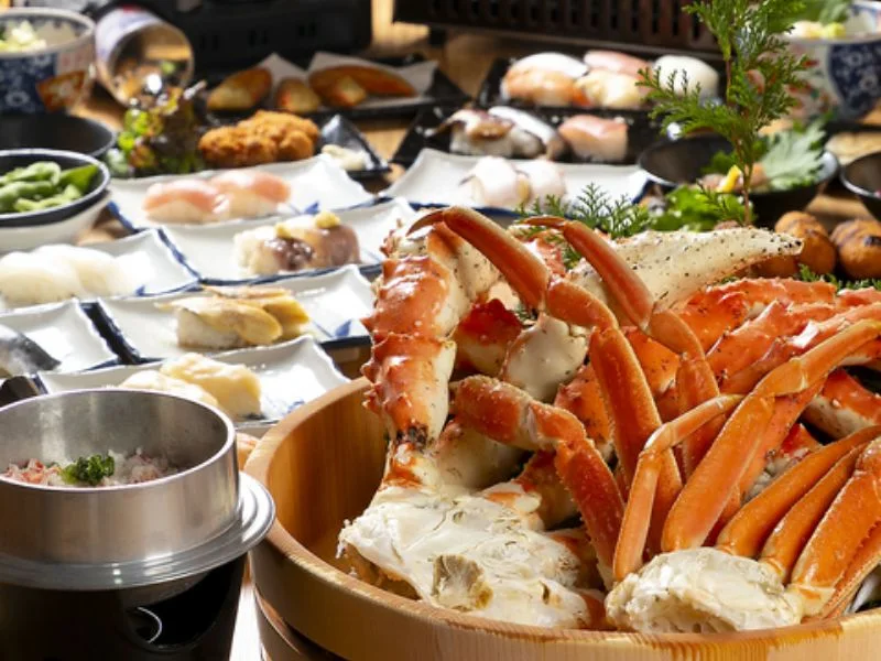 盡情享受螃蟹與壽司的吃到飽+喝到飽饗宴! 從名古屋車站步行僅1分鐘,交通便利!店家每日嚴選來自日本各地的新鮮海鮮直送,提供帝王蟹、本松葉蟹、紅松葉蟹、刺松葉蟹等人氣螃蟹料理,搭配現握壽司、各式單點美味,以及沙拉、炸物等多樣料理,通通無限享用! 再加上多款酒類飲品任您暢飲,讓您大啖高鮮度海味,享受一場奢華又滿足的饗宴時光!