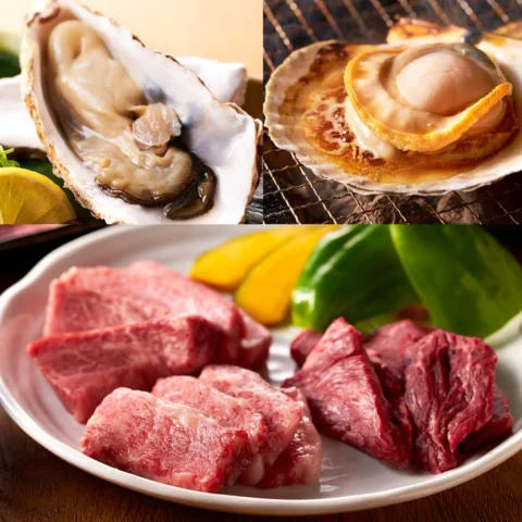 除了能直接品嚐食材原味的黑毛和牛燒肉和享受在海邊燒烤的樂趣之外,還有當天新鮮到貨的海鮮料理,以及經典居酒屋菜單,無論男女老少都能盡情享受!